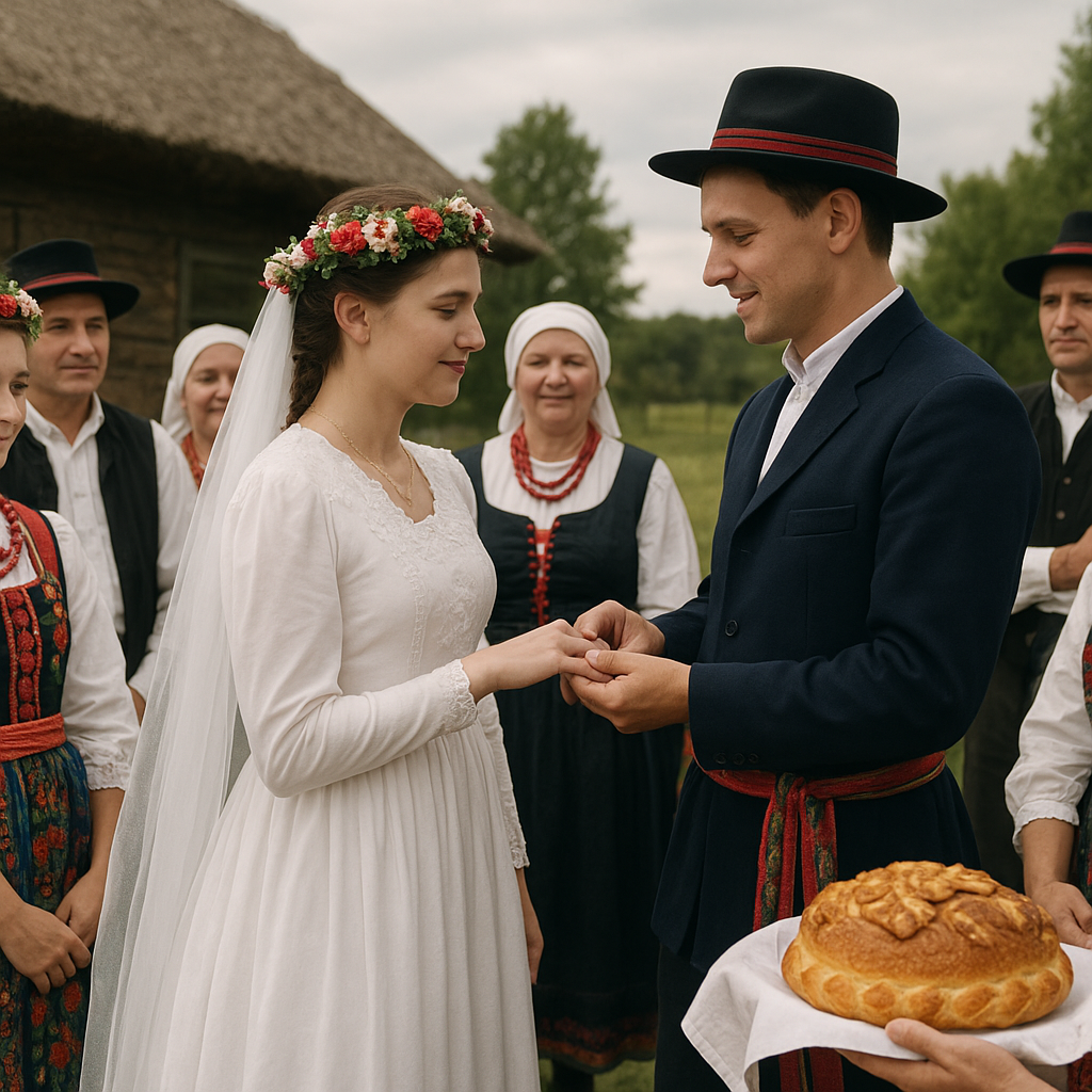 - Chleb i sól – para młoda jest wieszana nad progiem, by poczuła smak gościnności.